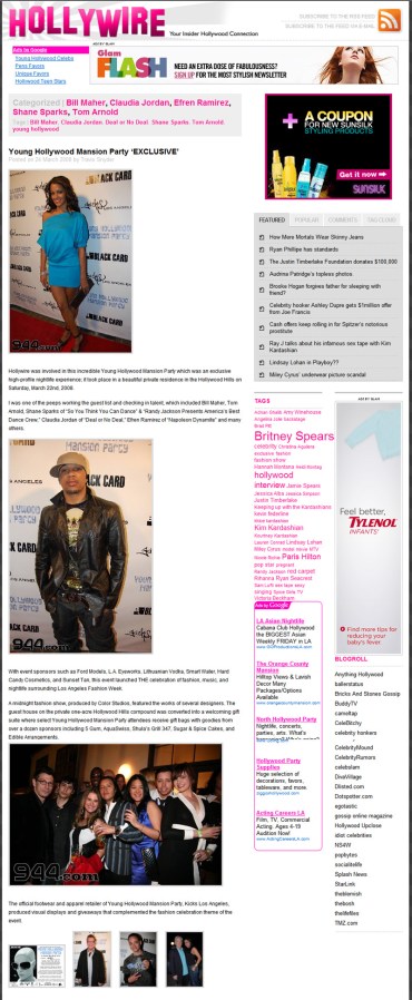 Hollywire writes piece on my party.